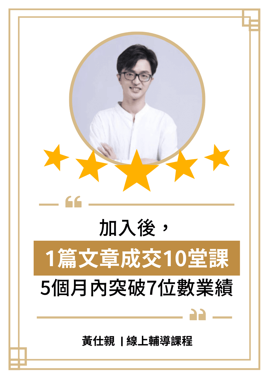 100+ 不同領域線上講師的背後導師 ,更成功孵化了眾多 1~3 個月內變現百萬博主。